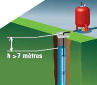 Contrairement à une pompe de surface, la pompe immergée a la possibilité de relever des eaux dans de grandes profondeurs : elle est 100% étanche et se place au fond de l'eau.