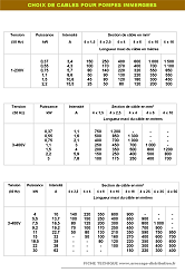 Choix des câbles pour pompe immergée (pdf)