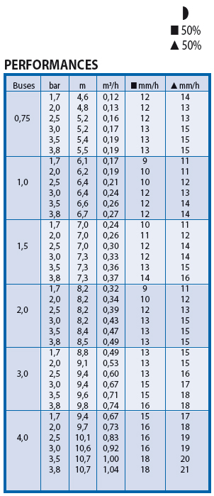 | Pression de fonctionnement | 1,7 à 3,8 bars |