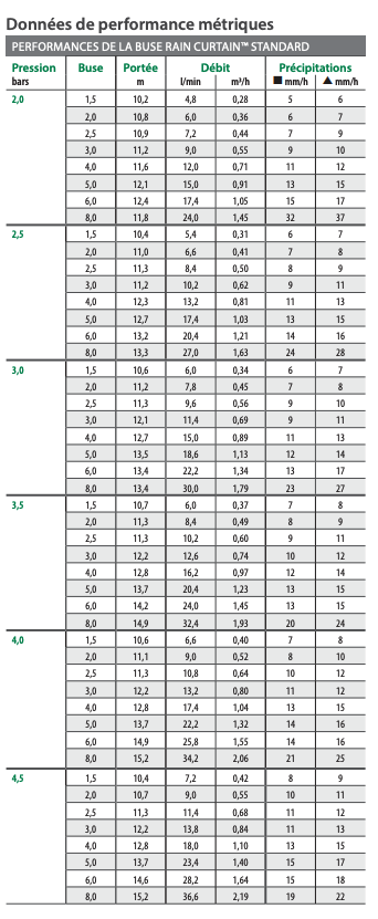 Portée : 7.6 à 15.2 m - Pression : 1,7 à 4,5 bar -