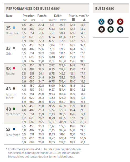 Livré avec une buse n°48 facilement identifiables par débit, simples et rapides à installer et à changer. Raccordement Entrée femelle: 1½" ACME