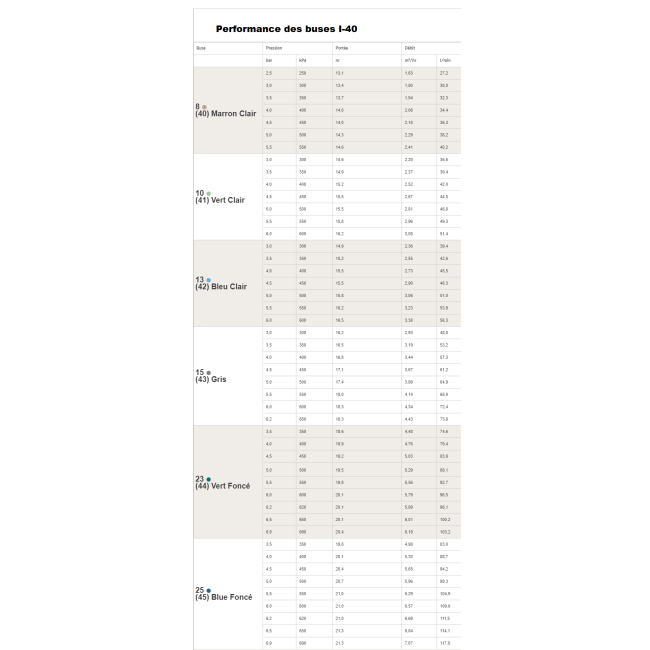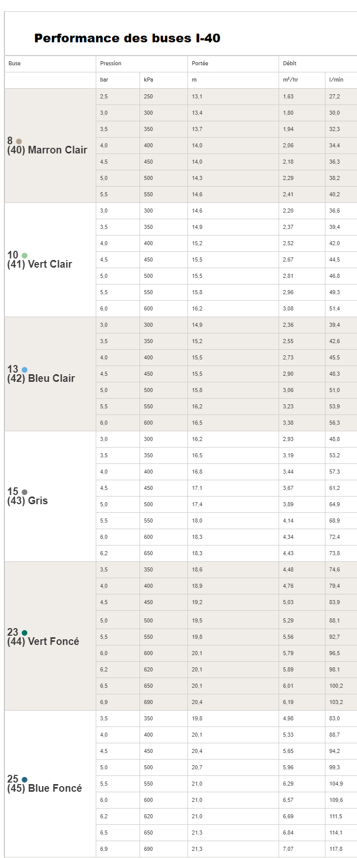 | Inclus | Livré avec jeu de 12 buses I-40 |