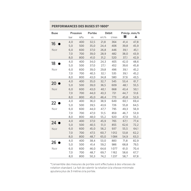 Les arroseurs ST-1600 et ST-1600HS sont conçus pour fournir une irrigation à longue portée. Idéal pour les terrains de football et de hockey sur gazon, ainsi que pour d'autres applications comme les pâturages, les manèges pour chevaux, les enclos d'animaux de zoo, le dépoussiérage et les espaces verts. Ces arroseurs sont particulièrement adaptés aux terrains de grande taille et peuvent également être utilisés sur des terrains de sport synthétiques. Ils complètent les modèles ST-90 et STG-900 en offrant des capacités d'irrigation supplémentaires.