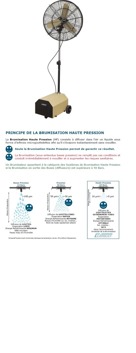 - Il permet une brumisation haute pression (60 Bars) par Groupe HP PRO et Buses CLIMEXT®.