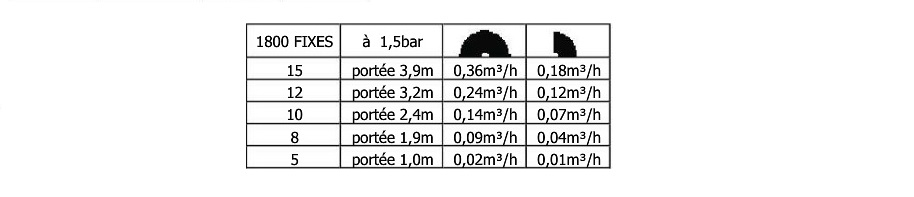 Pression : 1 à 2,1 bars - Portée : 0,9 à 5,5 m - Réglable de 0 à 360°