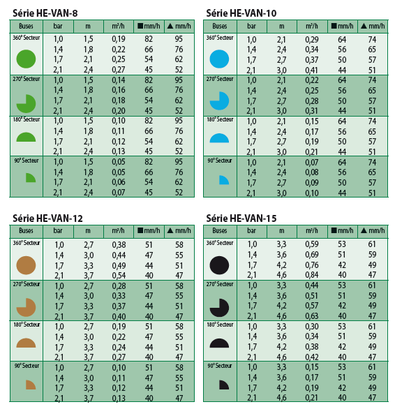 - Type de Buse : Secteur variable (réglable) et Haute Efficacité (HE)