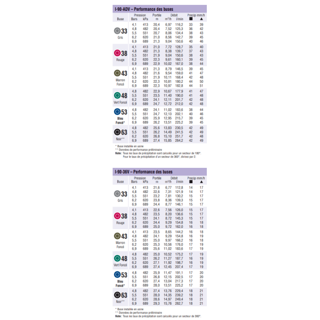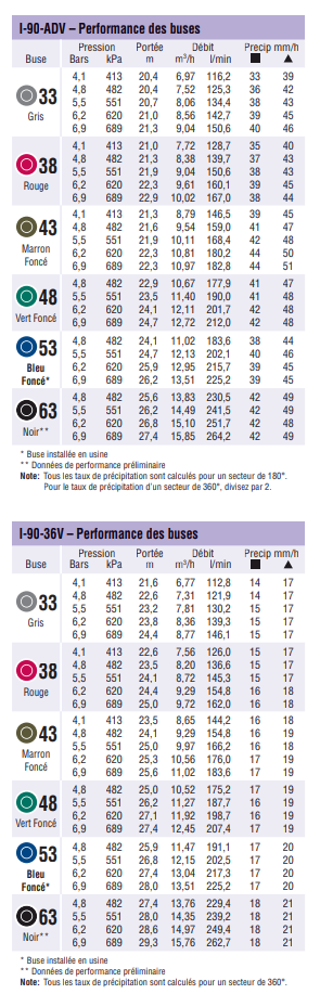 | Type de buse | 25, 33, 38, 43, 48, 53, 63, 73 |