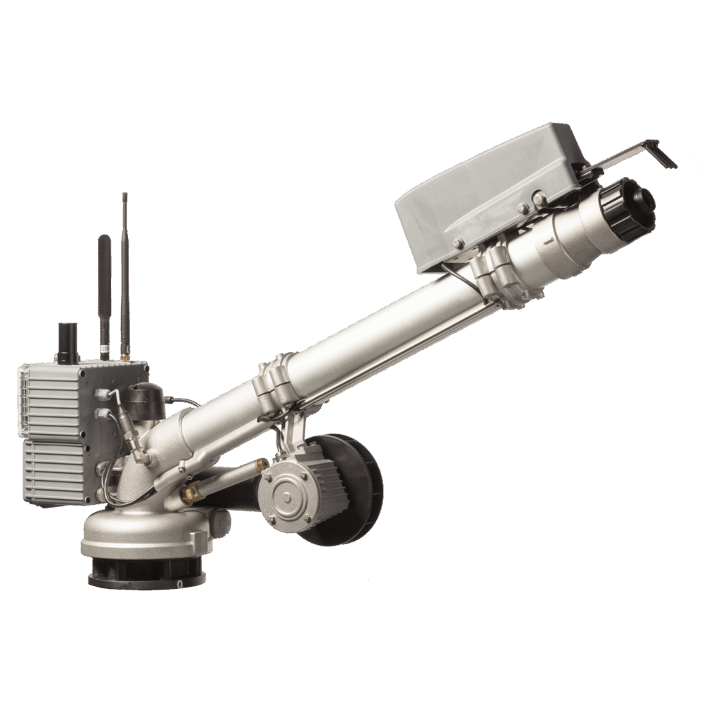 Canon d'arrosage électrique et intelligent avec GPS, idéal pour les grandes surfaces irrégulières.