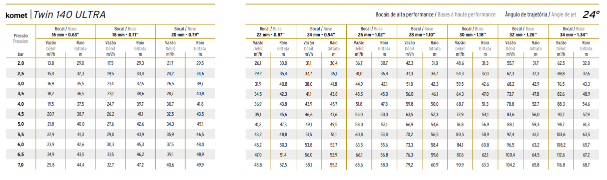 | Type de canon d'arrosage | Komet Twin Ultra 140 |