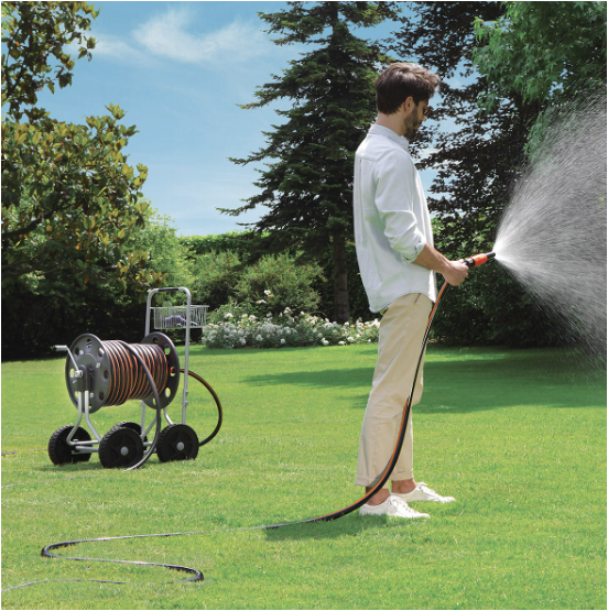 Le chariot dévidoir Claber est conçu pour une utilisation pratique et efficace, grâce à ses 4 roues stables et son structure entièrement en acier solide.