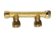 Collecteur laiton taraudé 1 pouce, 2 voies/sorties pour l'installation de vannes ou d'électrovannes.