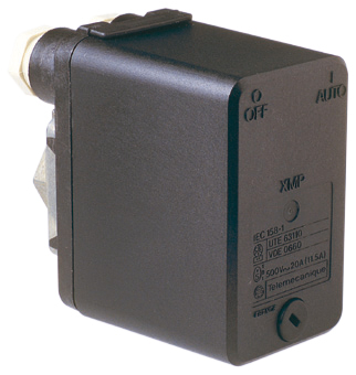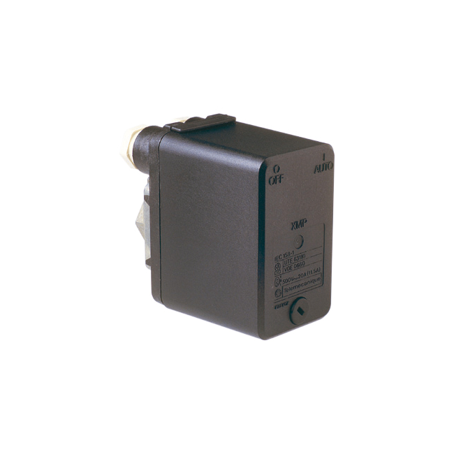 Les contacteurs manométriques XMP sont des pressostats pour circuits de puissance, à écart réglable. Ils sont utilisés pour le contrôle de pression d'eau et d'air jusqu'à 6 et 12 bars. Ils permettent la mise en marche et l'arrêt d'une électropompe à des pressions déterminées entre 2 seuils, d'enclenchement et de déclenchement.
