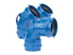 Raccords en fonte ductile pour tubes PVC-U ou PE. Revêtement époxy bleu appliqué par cataphorèse. Livrés avec les joints pré-montés et protégés par des bouchons. Raccords verrouillables par contrebride à visser 1/4 de tour