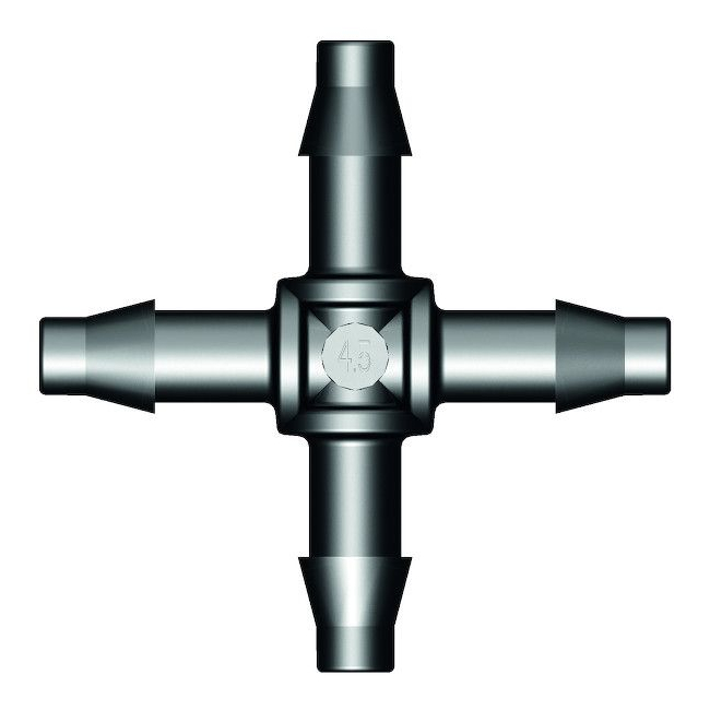 Croix cannelée 4x6 utilisée pour raccorder quatre tuyaux 1/4'' (4x6 mm)
