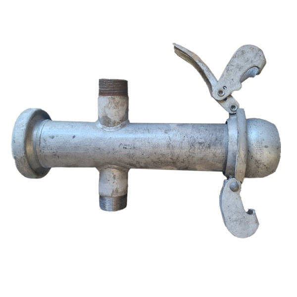 Croix HR BAUER avec 2 sorties filetées 1"1/2, en acier galvanisé pour conduites agricoles.
