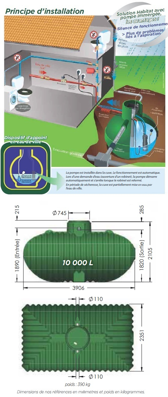 Cuve récupération eau de pluie Ecobase 10000L Plasteau