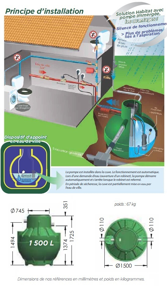 Cuve récupération eau de pluie Ecobase 1500L Plasteau
