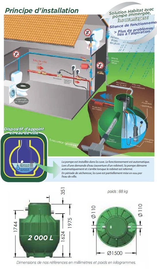 Cuve récupération eau de pluie Ecobase 2000L Plasteau