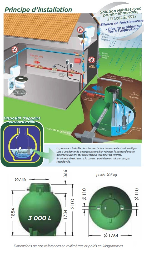 Cuve récupération eau de pluie Ecobase 3000L Plasteau