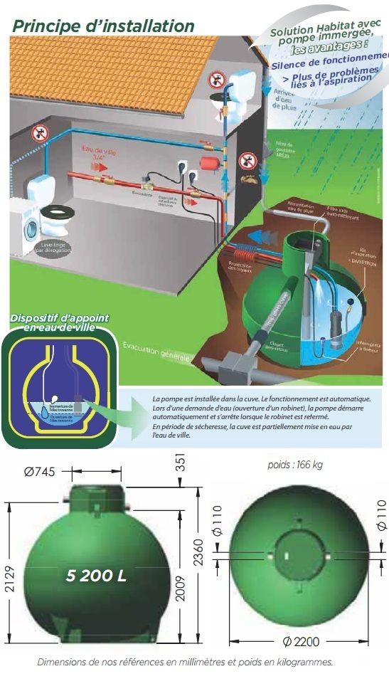 Cuve récupération eau de pluie Ecobase 5000L Plasteau