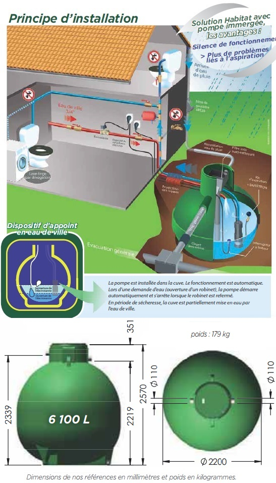 Cuve récupération eau de pluie Ecobase 6000L Plasteau