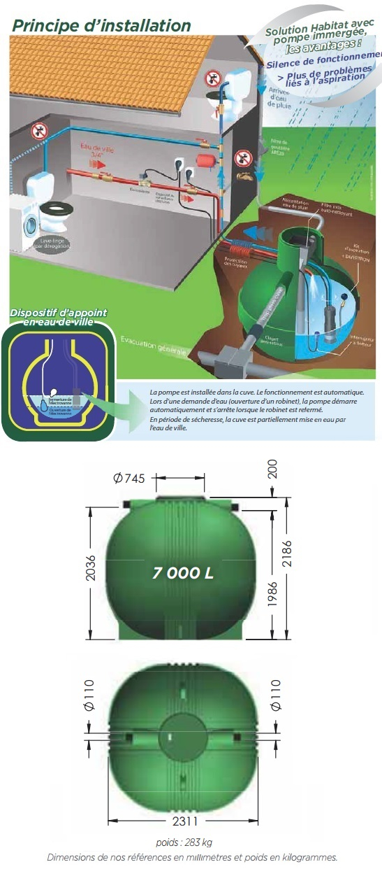 Cuve récupération eau de pluie Ecobase 7000L Plasteau