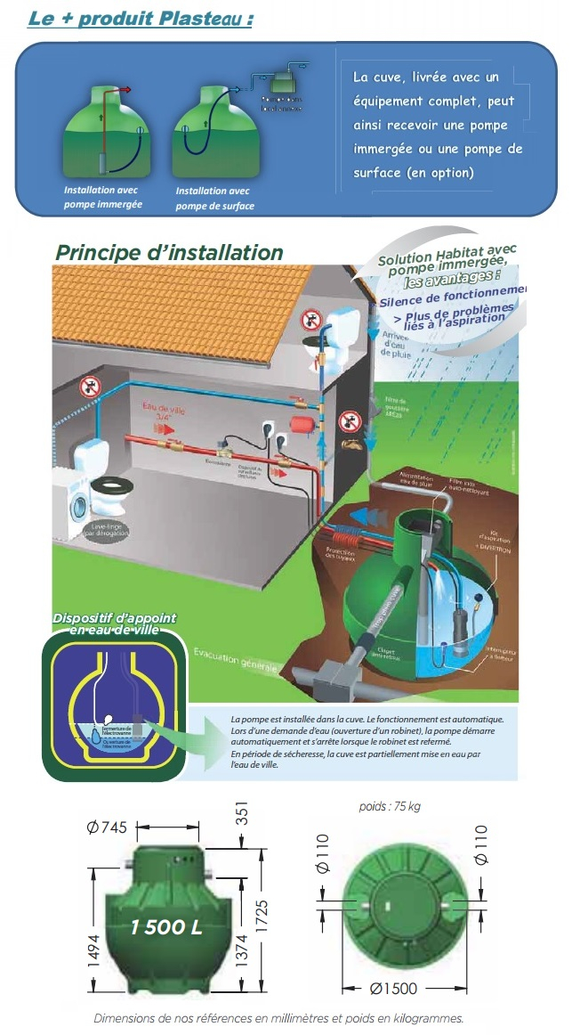 Cuve récupération eau de pluie équipée Ecociter 1500 L Plasteau
