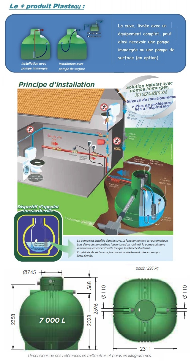 NB : Pour installer une cuve de récupération d'eau de pluie de 7000L, veuillez prévoir les engins nécessaires pour les déchargements de cette taille.