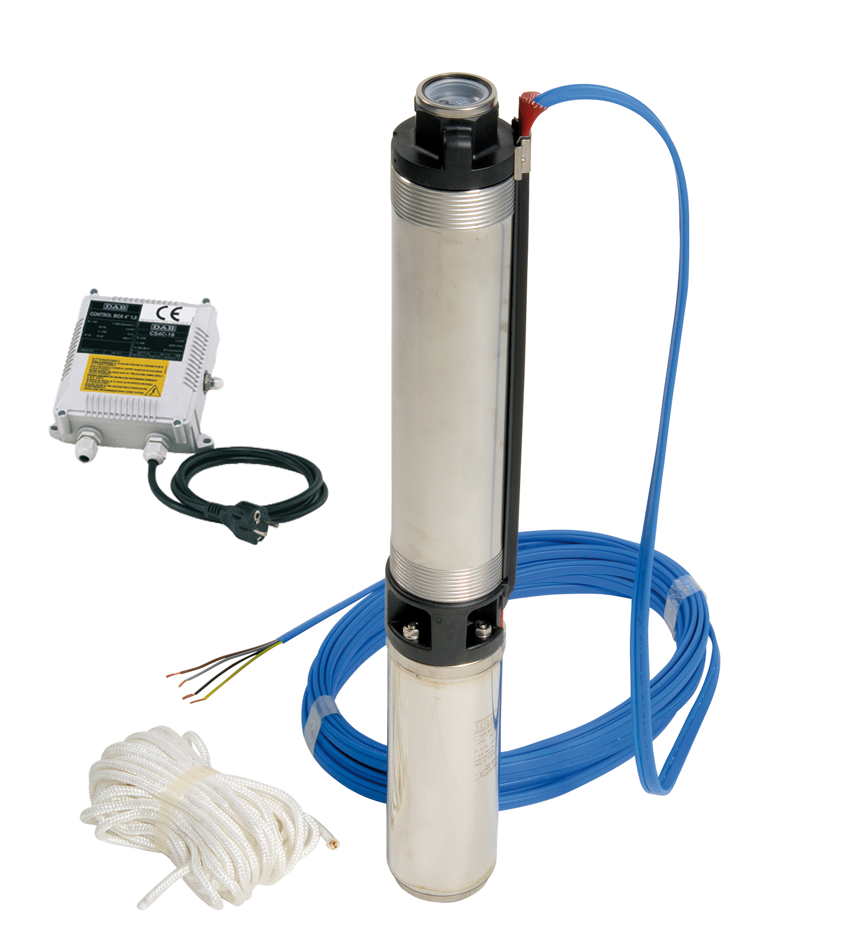 Pompes immergées pour puits profonds et forages 4'' DCS4. Prêtes à la pose. Excellent rendement. Très grande résistance à l'usure et au sable. Entièrement construite en matériau inoxydable. Elles offrent un choix de débits et de pressions pour répondre à de nombreuses applications dans l'alimentation, la surpression et la distribution d'eau dans des installations domestiques et d'arrosage.
