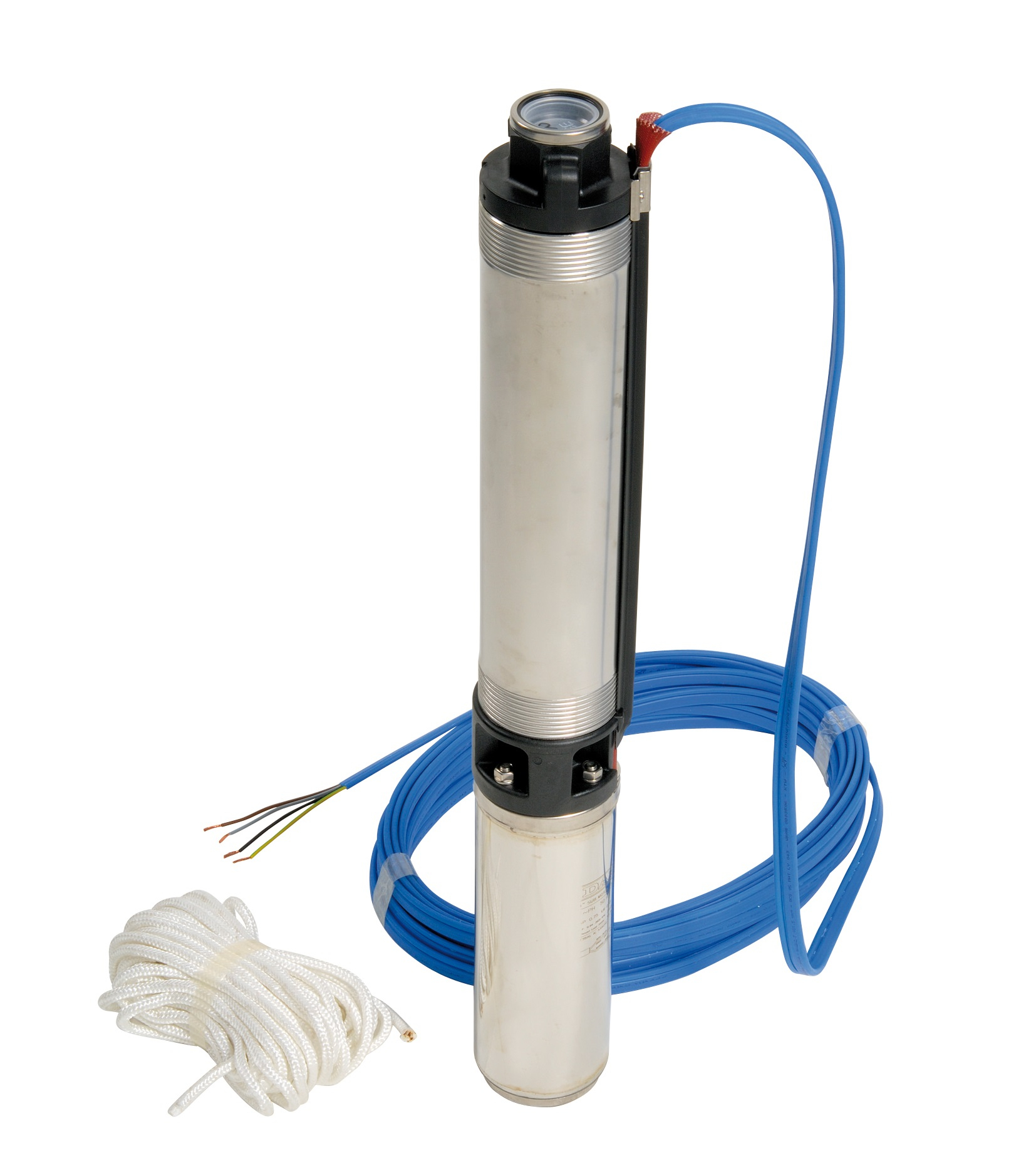 Pompes immergées pour puits profonds et forages 4'' DCS4. Prêtes à la pose. Excellent rendement. Très grande résistance à l'usure et au sable. Entièrement construite en matériau inoxydable. Elles offrent un choix de débits et de pressions pour répondre à de nombreuses applications dans l'alimentation, la surpression et la distribution d'eau dans des installations domestiques et d'arrosage.