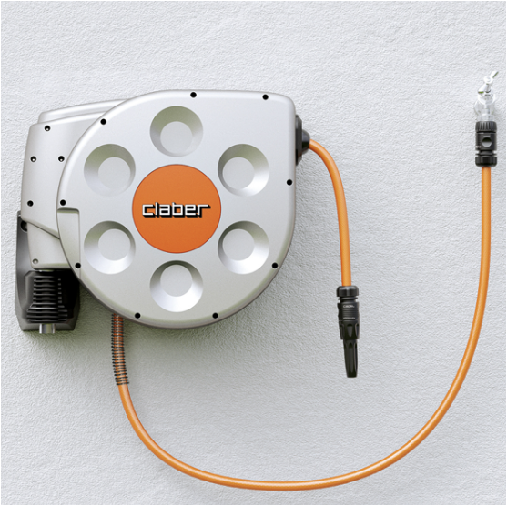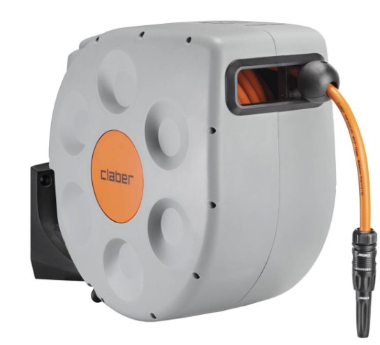 Enrouleur avec rembobinage automatique Rotoroll 20m, à fixation murale orientable 180°, de la marque Claber
