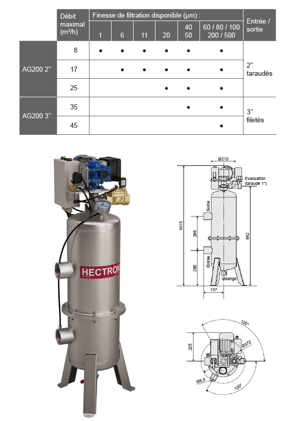| Type de filtre | Filtre autonettoyant AG Hectron |