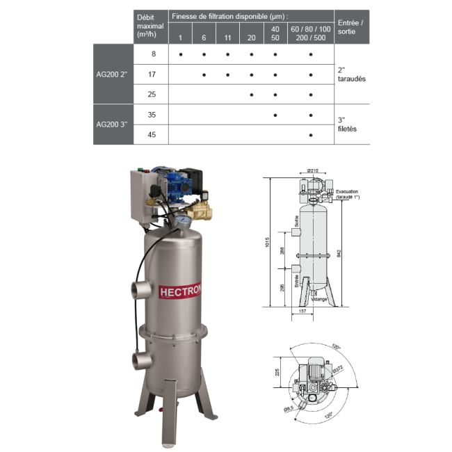 | Type de filtre | Filtre autonettoyant AG Hectron |
