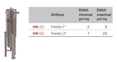 - Fiabilité : Sans pièces mobiles, le modèle HN assure une filtration continue et un faible besoin d'entretien.