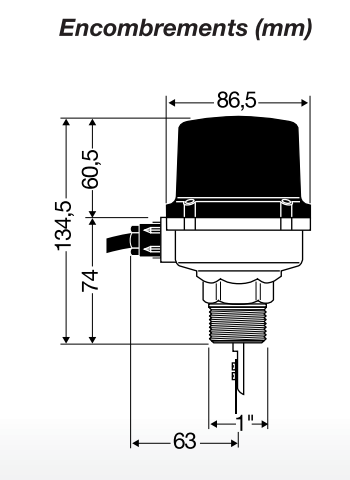 | Caractéristiques | M 1’’, corps laiton, pression 10 bar maxi, -30°C à +120°C, IP54. |