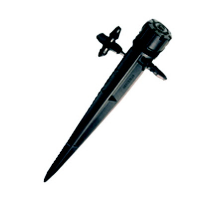 Micro-asperseur 360° sur pique à débit réglable. Idéal pour les massifs de fleurs, couverts végétaux, plantes en pots.