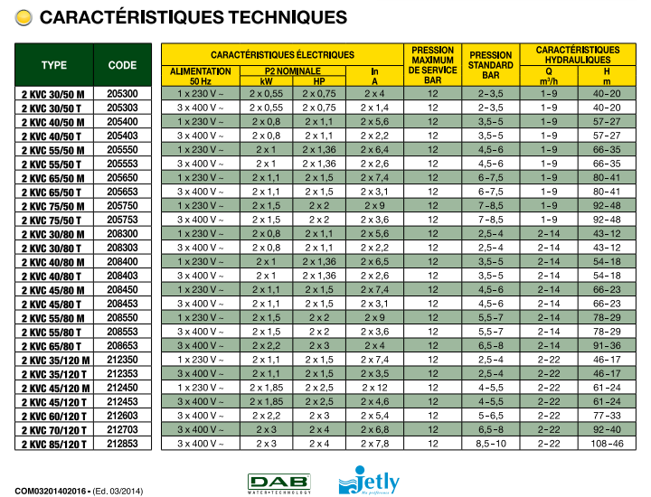 | Type de pompe de surface | Groupe ACTIVE DRIVER KVC |