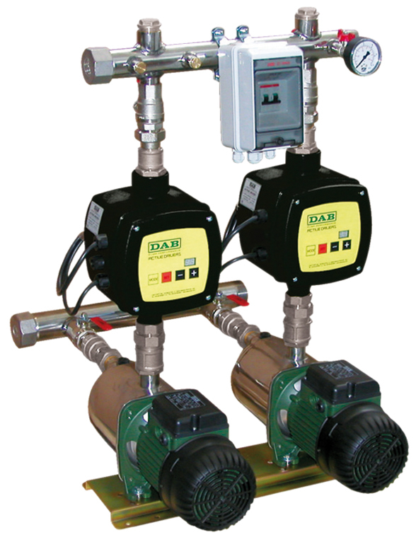 - À la première baisse de pression due à un puisage d’eau, la 1ère pompe se met en marche et quand la demande de débit augmente, la seconde pompe démarre en cascade.