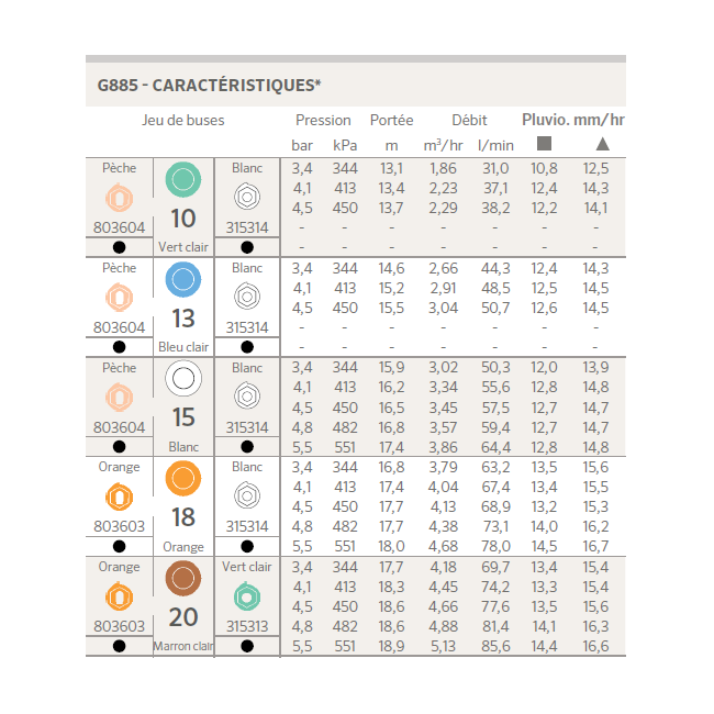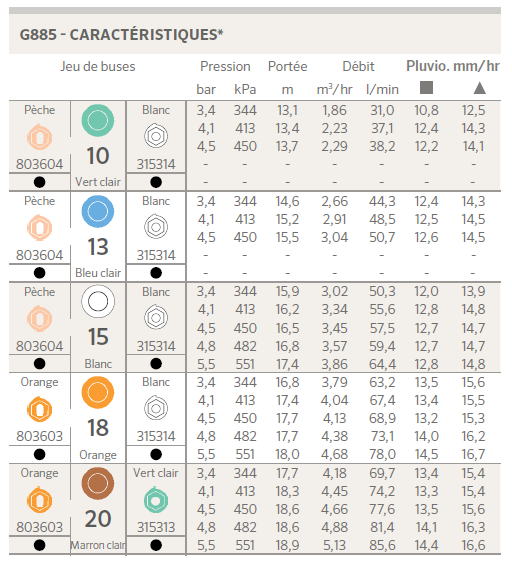 Spécialement conçues pour les arroseurs turbine série G885, de la marque HUNTER.