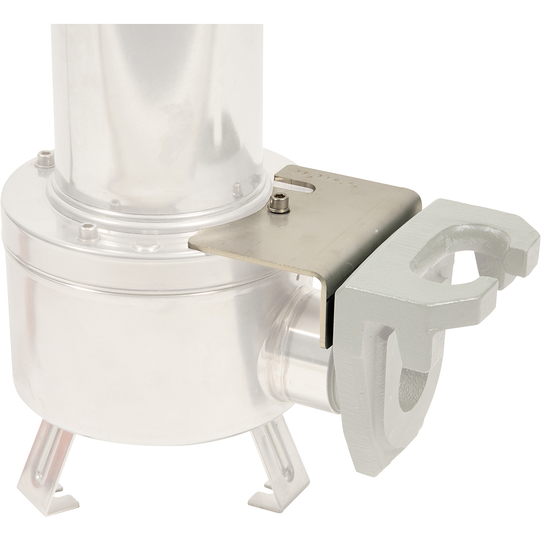 Permet de fixer solidement une griffe de pied d'assise de 2" sans risque de renversement de la pompe.