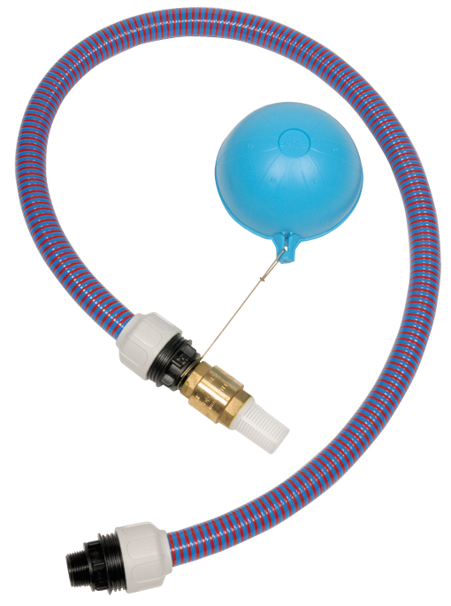 Kit d'aspiration, avec crépine et flotteur, pour les pompes Divertron x. En utilisation dans une cuve de récupération d'eau de Pluie.
