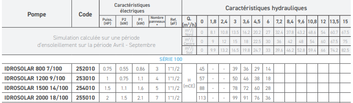 | Type de pompe immergée | IDROSOLAR série 100 |