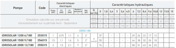 | Type de pompe immergée | IDROSOLAR série 180 |