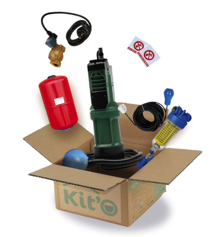 Kit de pompage pour cuves de récupération pluviale.