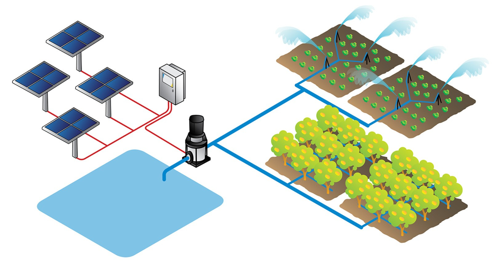 - Systèmes d'irrigation à fort débit (inondation, aspersion pour grandes parcelles) sur des terrains plats ou à faible dénivelé.