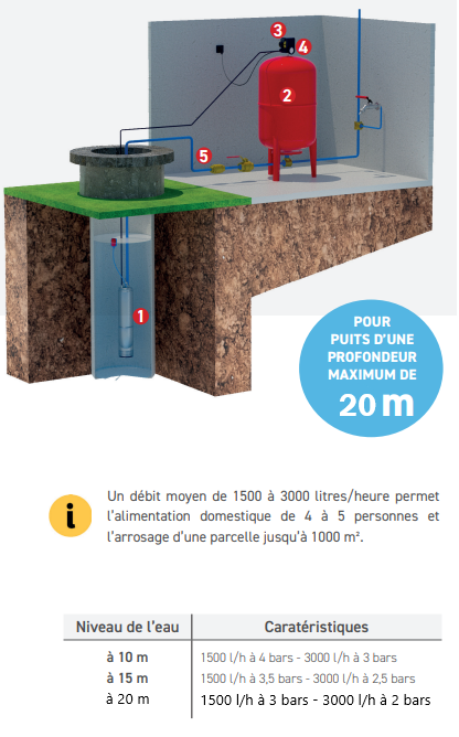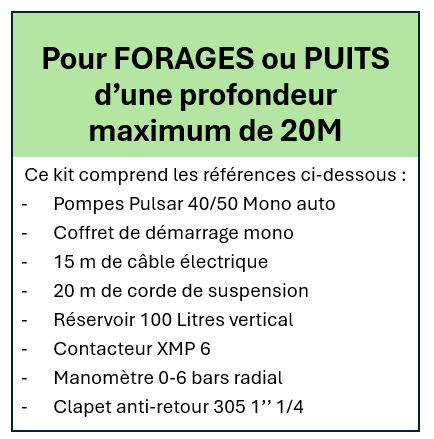Kit de pompage complet pour puit d'une profondeur maximum de 15 mètres