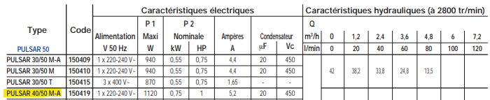 Pompe PULSAR 40/50 Mono Automatique DAB :