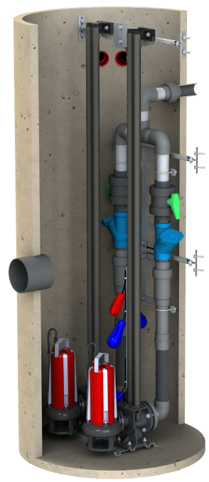 Ce kit est conçu pour faciliter l’installation des pompes de relevage dans des fosses en béton préfabriquées. Il intègre tous les composants nécessaires pour garantir une évacuation efficace et sécurisée des eaux usées et chargées. Il est spécialement conçu pour assurer une intégration optimale aux postes en béton, offrant ainsi une solution clé en main pour le transfert des effluents.