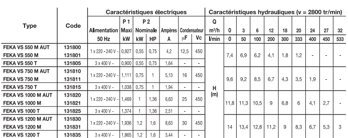 Débit : 3 à 20 m3/h - HMT : 1.2 à 6.9 m - Puissance : 0.55 Kw - Mono - Automatique