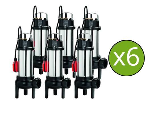 Lot de 6 pompes automatiques de relevage SEMISOM 490 à sortie horizontale, évacuation d'eaux chargées domestiques.